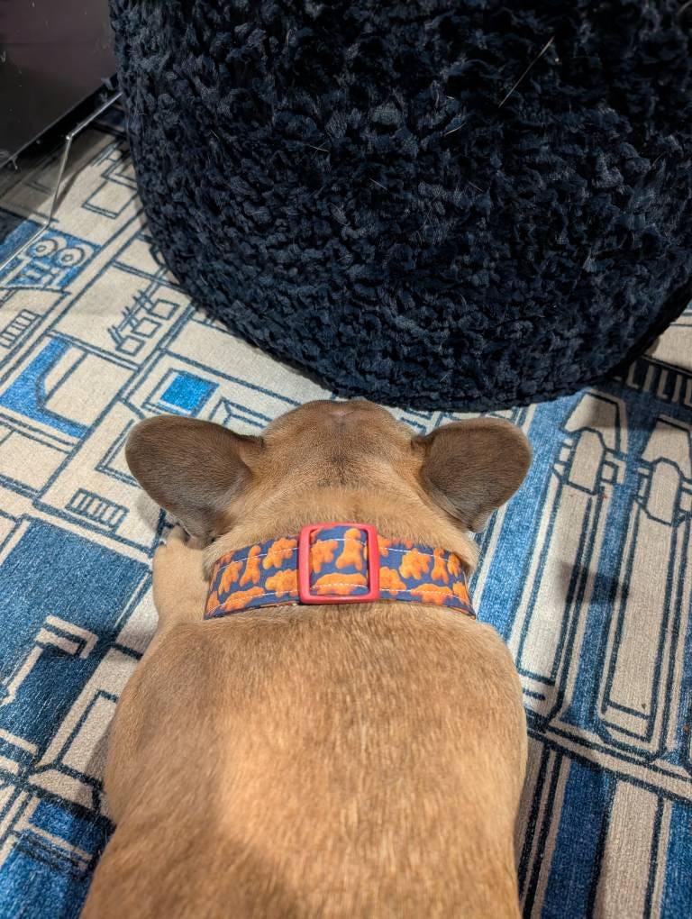 My Frenchie puppy, McNugget, had been wildly picky about his collars and what goes around his neck. This is the first collar he didn't complain about? The fabric is sturdy but soft enough not to bother his neck rolls.