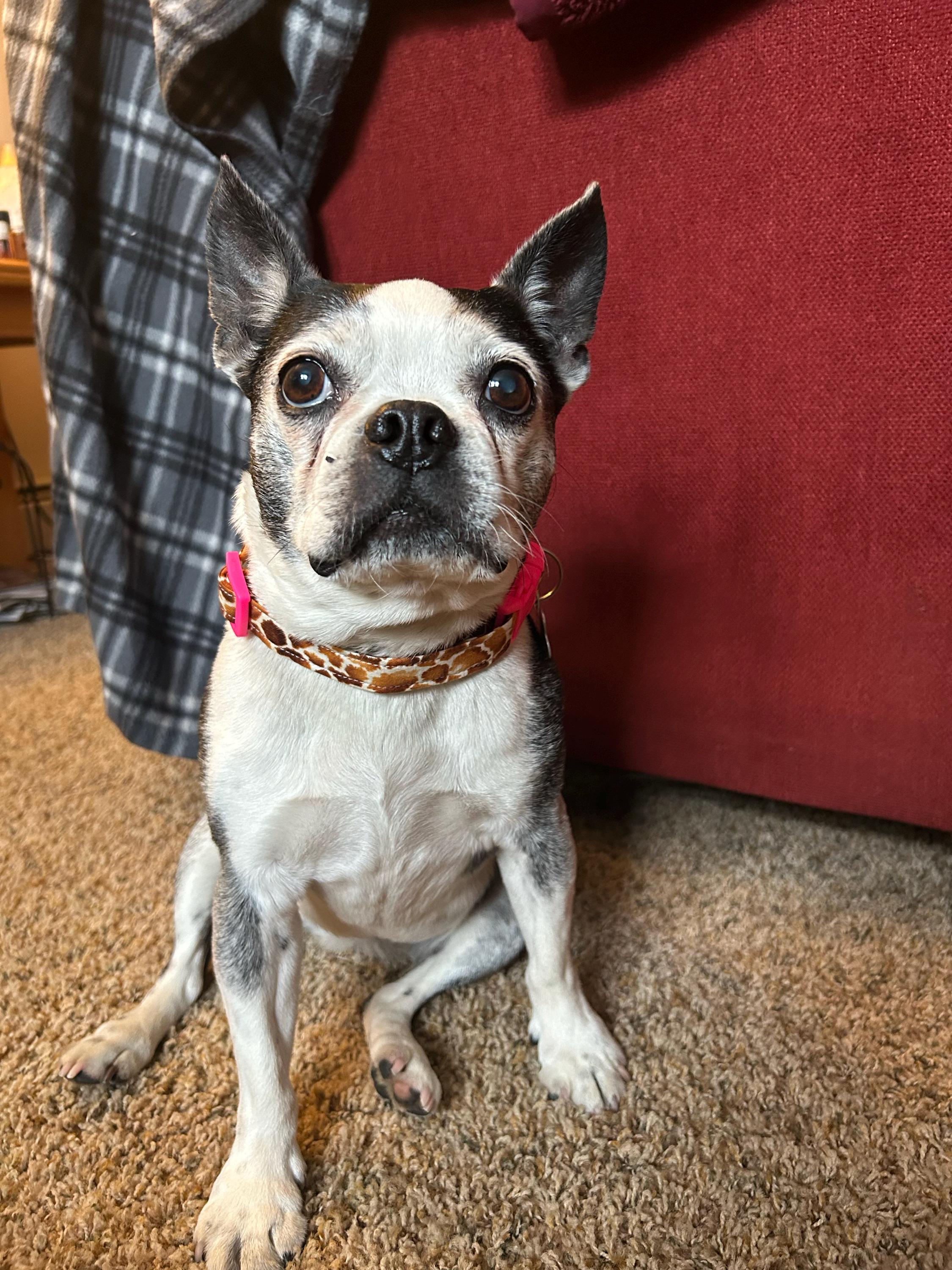 Our 12yo Boston needed some glam and this collar did the trick!!